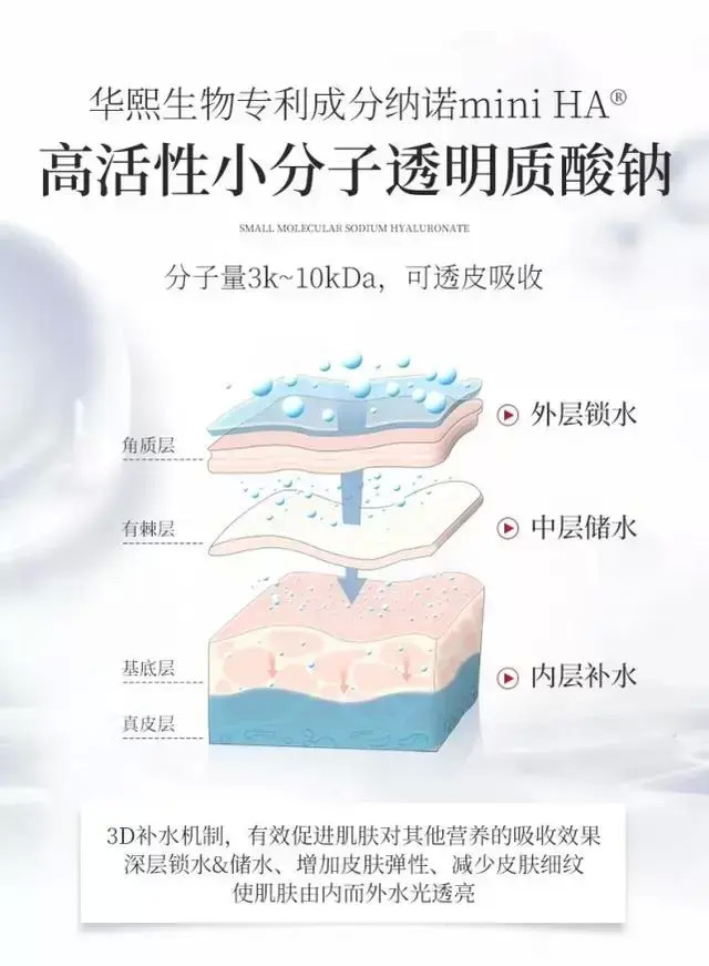普通身體乳的滋潤(rùn)只停留在皮膚表面而到達(dá)不了肌底,而古草凝萃人參維E乳含高活性小分子透明質(zhì)酸鈉,它是由華熙生物實(shí)驗(yàn)室主導(dǎo)研發(fā)的專利成分納諾miniHA,分子量?jī)H3k~10kDa,可透皮吸收,復(fù)配天然植物油脂,實(shí)現(xiàn)使肌膚由內(nèi)而外水光透亮。