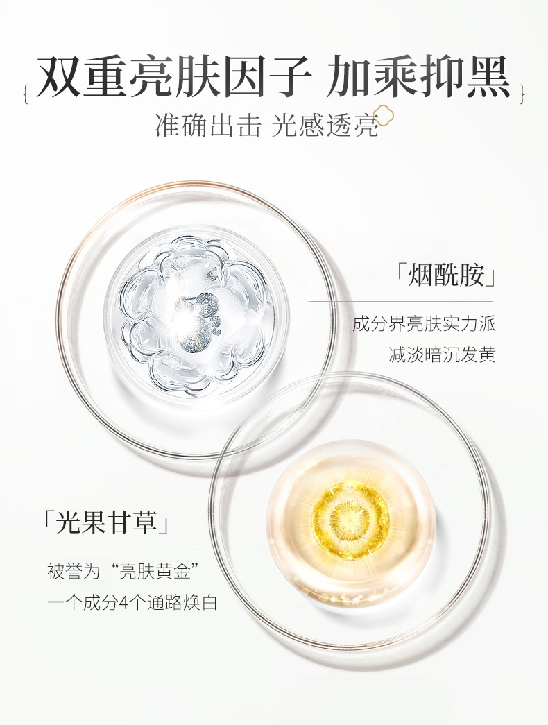 2、煙酰胺X光果甘草:可針對(duì)粗糙暗沉無(wú)光肌膚,加倍提升亮膚效果。