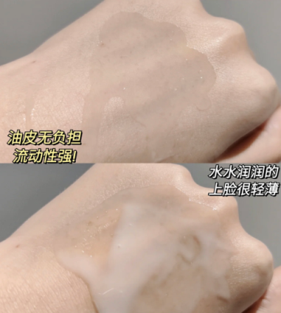 古草凝萃乳液的質(zhì)地流動性比較強,超級好推開,屬于非常清爽的類型,沒有一丁點兒的油膩感,上臉非常好吸收,吸收后肌膚有種喝飽水的感覺,滋潤保濕的效果絕了!