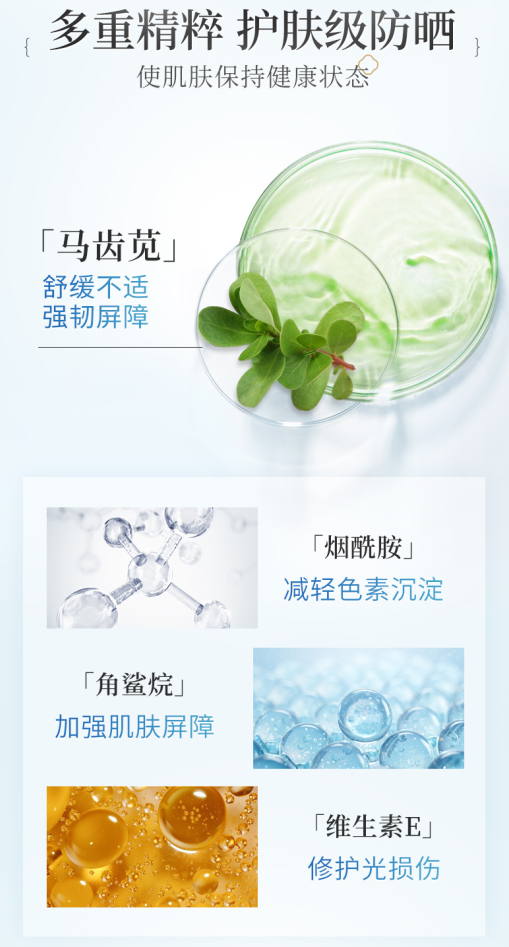 古草凝萃防曬乳萃取多種植物天然舒緩成分維持肌膚健康狀態(tài),做到了外防曬,內(nèi)修護(hù),抗光老等多重功效,并為肌膚提供充足水分!下面我們詳細(xì)了解下它的核心成分!