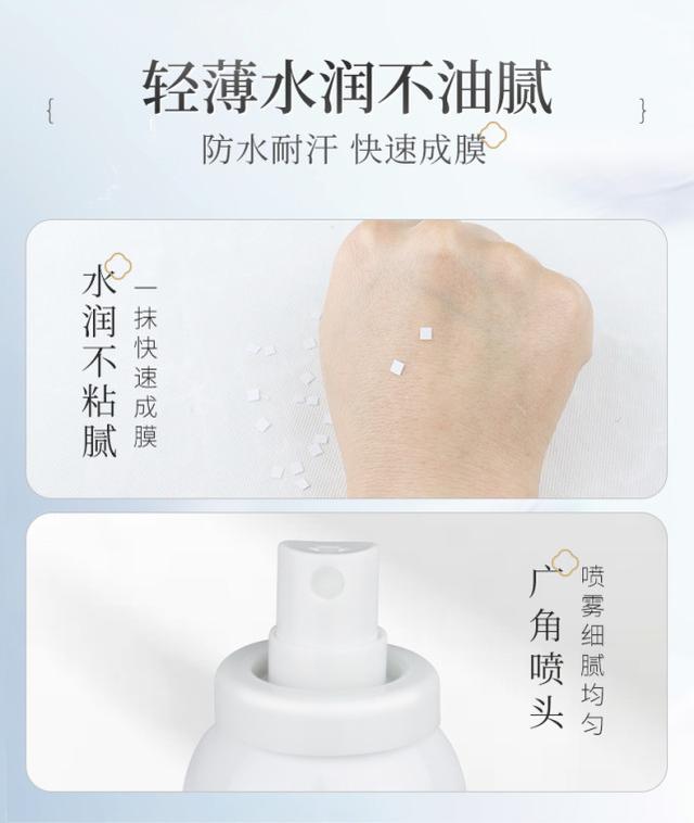 補噴多次也不會黏膩泛油光,膚感清爽到還以為自己噴了補水噴霧,吸收后皮膚又潤又滑又有光澤,絲毫不干澀。這是因為防曬噴霧里添加了多種植萃保濕成分,還加入了補水鎖水成分---透明質(zhì)酸鈉,幫助肌膚鎖住水分。