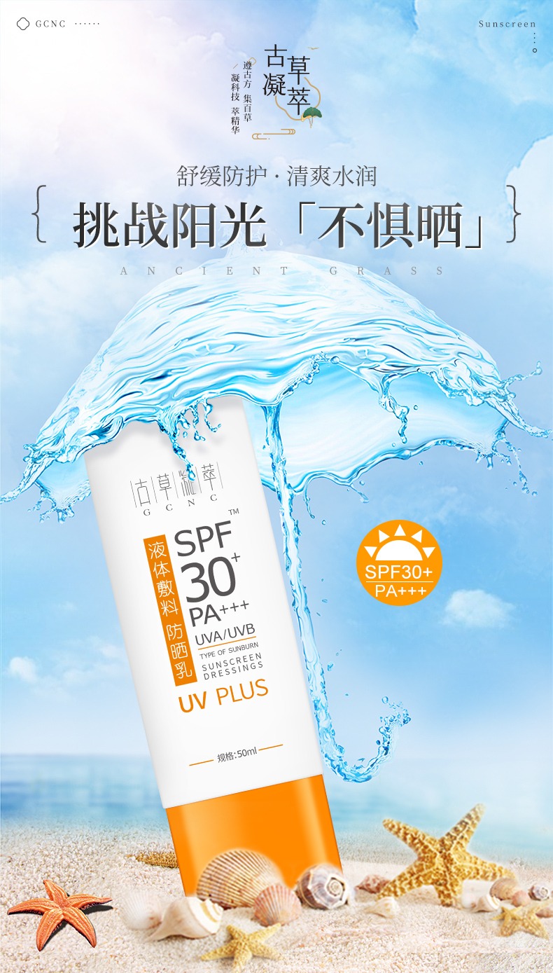 古草凝萃防曬乳質(zhì)地輕薄、水潤透氣、帶來不黏膩的清爽肌膚使用感,使用后不悶痘不黏膩。
