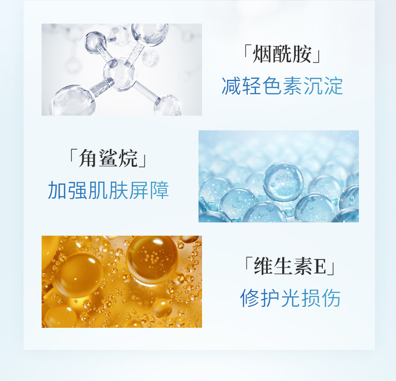 保濕滋潤,抗氧化,有效修復光損傷,改善光老化痕跡。能夠與人體皮脂融為一體,在皮膚表面形成天然屏障。