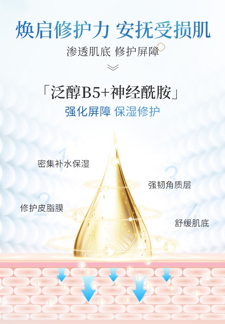 泛醇與神經(jīng)酰胺的結(jié)合,能使皮膚更好地抵御外界因素的刺激,起到強(qiáng)化屏障、保濕修護(hù)的強(qiáng)效力。