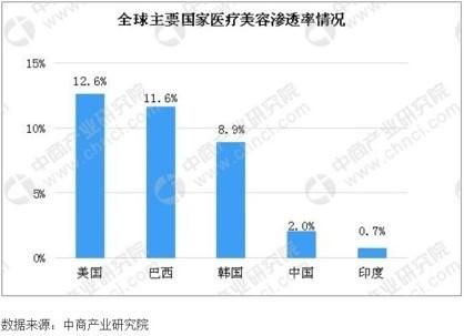 而醫(yī)美行業(yè)在歐美發(fā)達(dá)國家市場滲透率達(dá)12.6%,而中國市場滲透率只有2.0%,市場空間大,市場前景非常好!