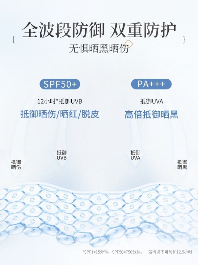 UVB會(huì)使皮膚在短時(shí)間內(nèi)曬傷、曬紅。防曬品包裝上的SPF值就是UVB防護(hù)能力的說明,數(shù)值越大,防護(hù)時(shí)間越長。