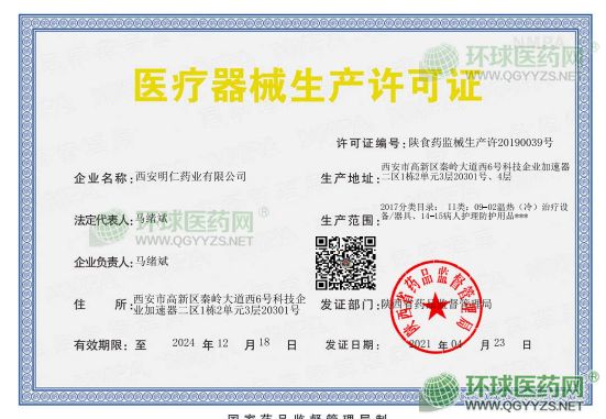 西安明仁藥業(yè)有限公司成立于2001年05月23日,注冊地位于西安市高新區(qū)秦嶺大道西6號科技企業(yè)加速器二區(qū)1棟2單元3層20301號,法定代表人為馬緒斌。經(jīng)營范圍包括二類醫(yī)療器械的銷售、研發(fā)及生產(chǎn);醫(yī)藥的研究、開發(fā)及技術(shù)咨詢服務(wù);保健用品、一類醫(yī)療器械的研發(fā)、生產(chǎn)、銷售及技術(shù)咨詢、技術(shù)轉(zhuǎn)讓;桃木枕、清膚按摩液、本草沐浴袋、麻油膏的研發(fā)、生產(chǎn)、銷售;化妝品的研發(fā)、銷售。(依法須經(jīng)批準的項目,經(jīng)相關(guān)部門批準后方可開展經(jīng)營活動)