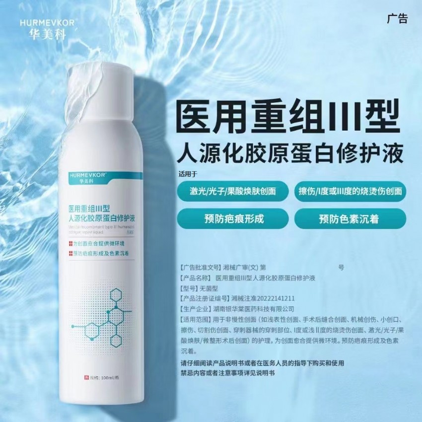 湖南銀華棠于2023年重磅推出“醫(yī)用重組III型人源化膠原蛋白系列”修復(fù)液-修復(fù)凝膠-修復(fù)貼,二類醫(yī)療器械,資質(zhì)齊全,著力打造安心、可靠、長效的高科技美膚產(chǎn)品!