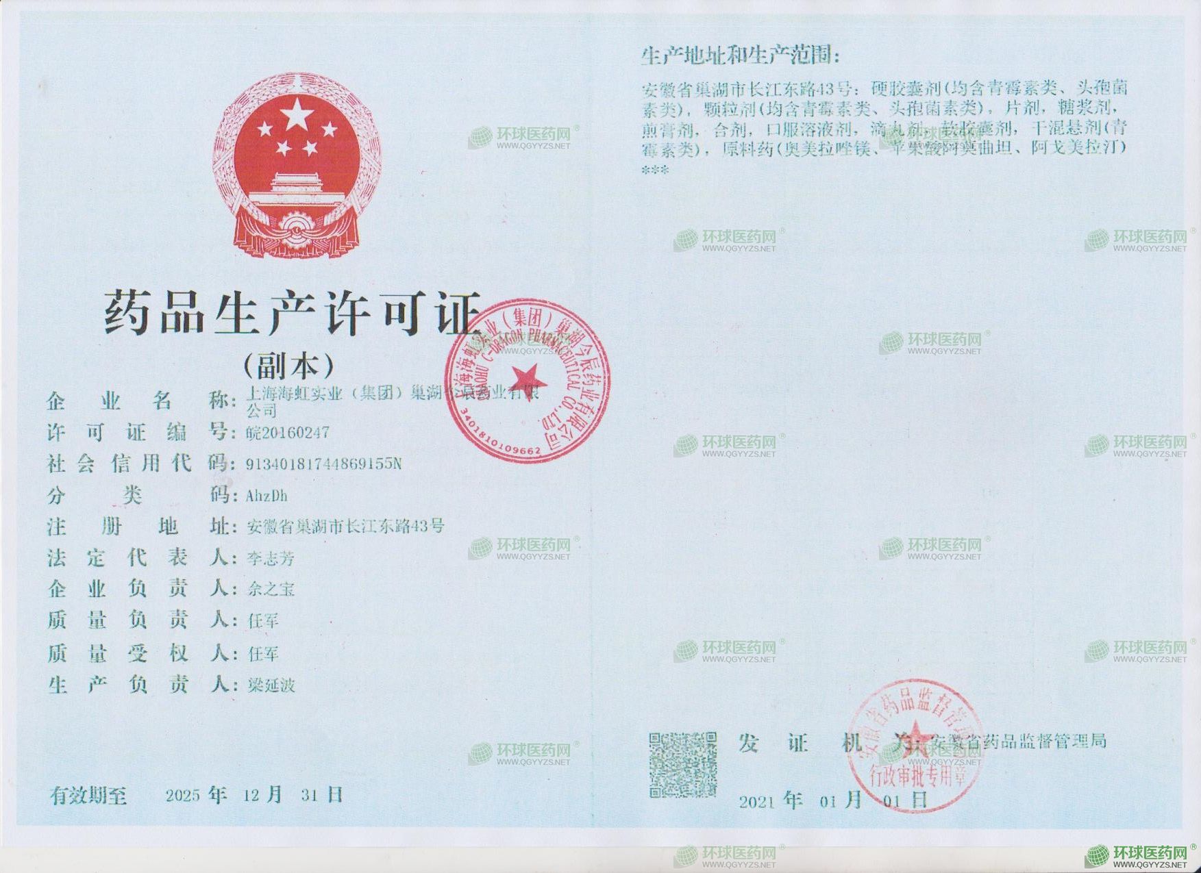 發(fā)證機(jī)關(guān): 安徽省藥品監(jiān)督管理局