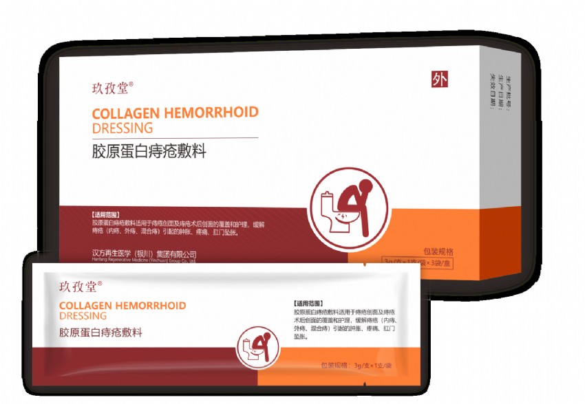 膠原蛋白痔瘡敷料是重組Ⅲ型膠原蛋白、卡波姆、甘油、依地酸二鈉、苯甲醇、三乙醇胺和純化水組成。