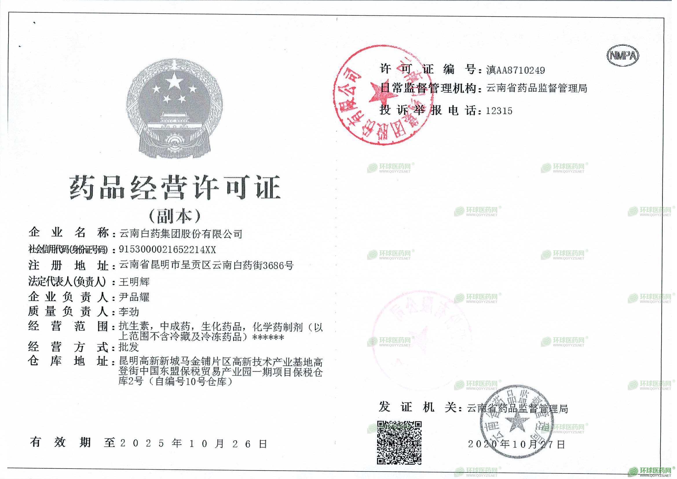 發(fā)證機關(guān): 云南省藥品監(jiān)督管理局