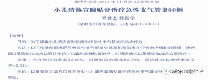 ①研究證明小兒清熱宣肺貼用于輔助治療小兒呼吸道感染療效確切