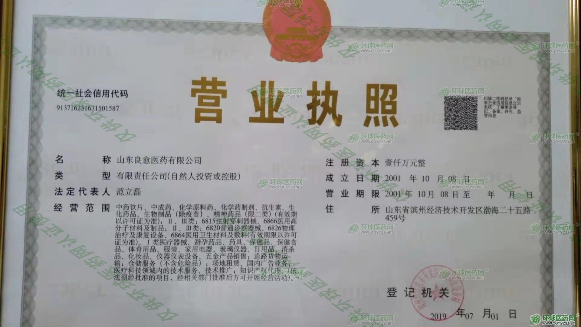山東良愈醫(yī)藥有限公司成立于2001年10月08日,注冊地位于山東省濱州經(jīng)濟技術開發(fā)區(qū)渤海二十五路459號,法定代表人為范立磊。經(jīng)營范圍包括許可項目:藥品批發(fā);第三類醫(yī)療器械經(jīng)營;食品銷售;道路貨物運輸(不含危險貨物);道路貨物運輸(網(wǎng)絡貨運);藥品互聯(lián)網(wǎng)信息服務。(依法須經(jīng)批準的項目,經(jīng)相關部門批準后方可開展經(jīng)營活動,具體經(jīng)營項目以相關部門批準文件或許可證件為準)一般項目:第二類醫(yī)療器械銷售;保健食品(預包裝)銷售;衛(wèi)生用品和一次性使用醫(yī)療用品銷售;日用百貨銷售;儀器儀表銷售;五金產(chǎn)品零售;普通貨物倉儲服務(不含危險化學品等需許可審批的項目);低溫倉儲(不含危險化學品等需許可審批的項目);非居住房地產(chǎn)租賃;廣告發(fā)布;廣告制作;技術服務、技術開發(fā)、技術咨詢、技術交流、技術轉讓、技術推廣;信息咨詢服務(不含許可類信息咨詢服務)。(除依法須經(jīng)批準的項目外,憑營業(yè)執(zhí)照依法自主開展經(jīng)營活動)山東良愈醫(yī)藥有限公司具有8處分支機構。