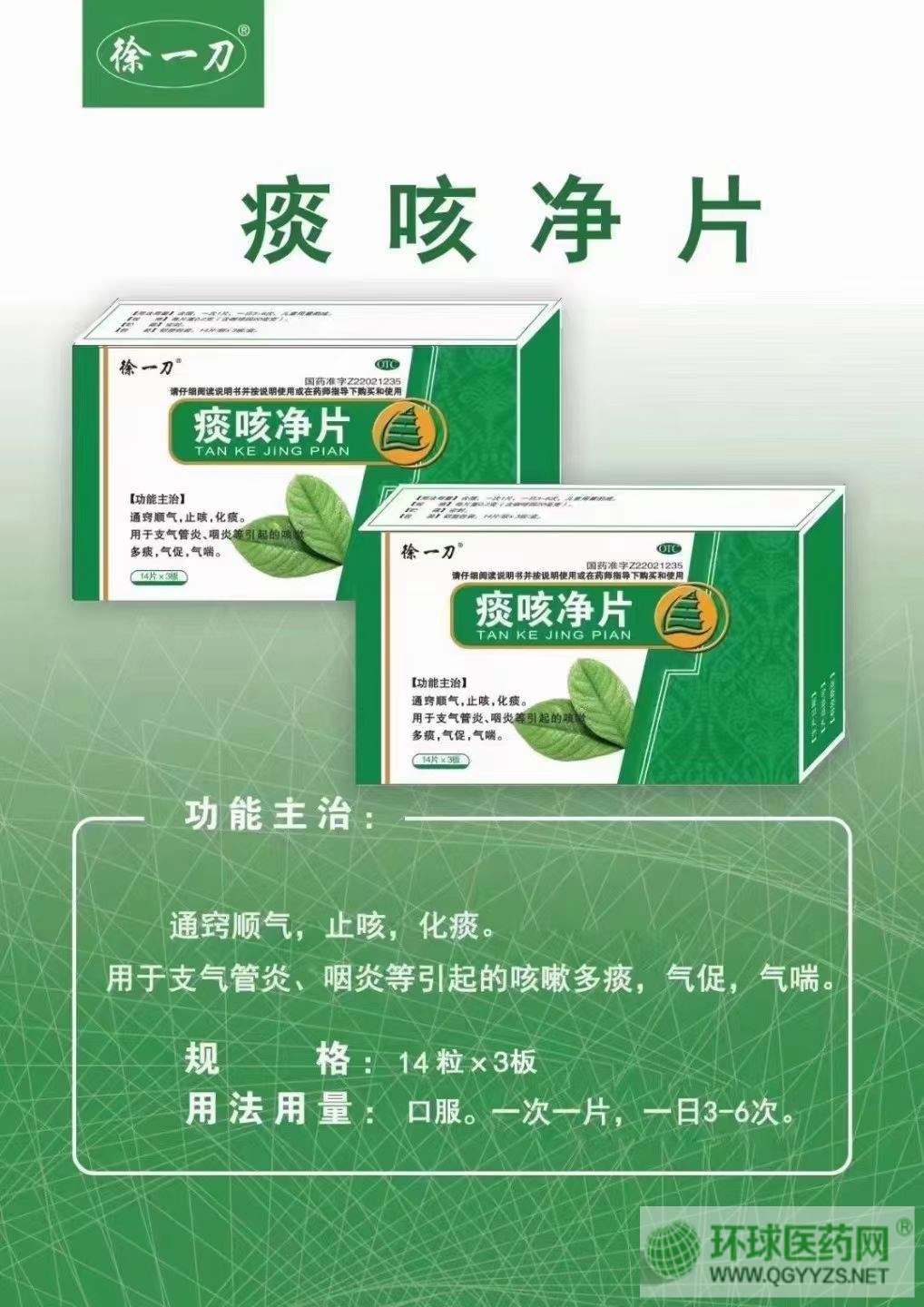 - 痰咳凈片(徐一刀) 批準(zhǔn)文號(hào): 國藥準(zhǔn)字Z22021235規(guī) 格: 42片