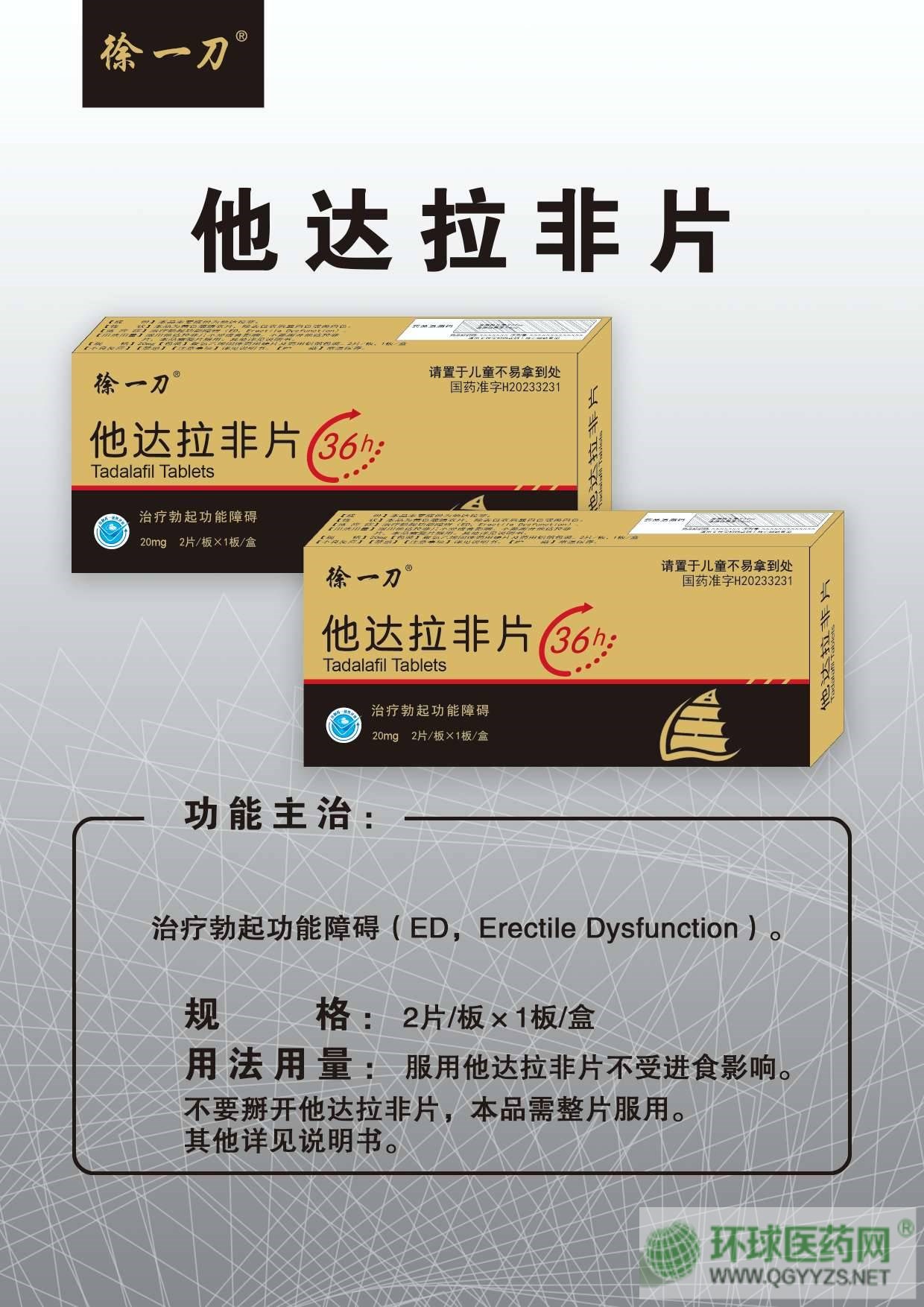 - 他達(dá)拉非片(徐一刀) 批準(zhǔn)文號(hào): 國藥準(zhǔn)字H20233231規(guī) 格: 20mg*2片/板盒