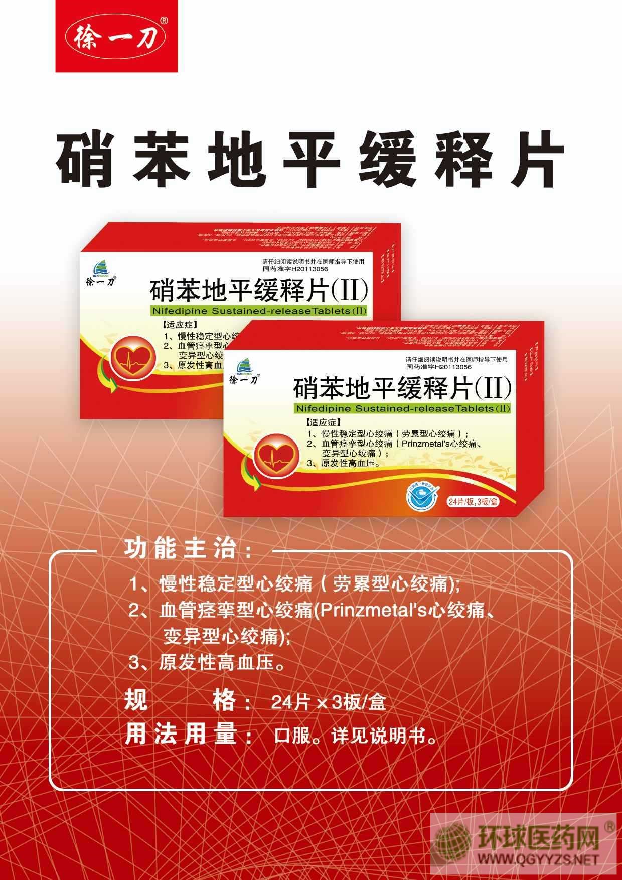 - 硝苯地平緩釋片(徐一刀) 批準(zhǔn)文號(hào): 國藥準(zhǔn)字H20113056規(guī) 格: 20mg*24片*3板
