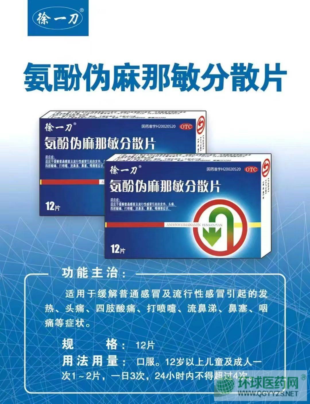 - 氨酚偽麻那敏分散片(徐一刀) 批準(zhǔn)文號: 國藥準(zhǔn)字h20020520規(guī) 格: 12片