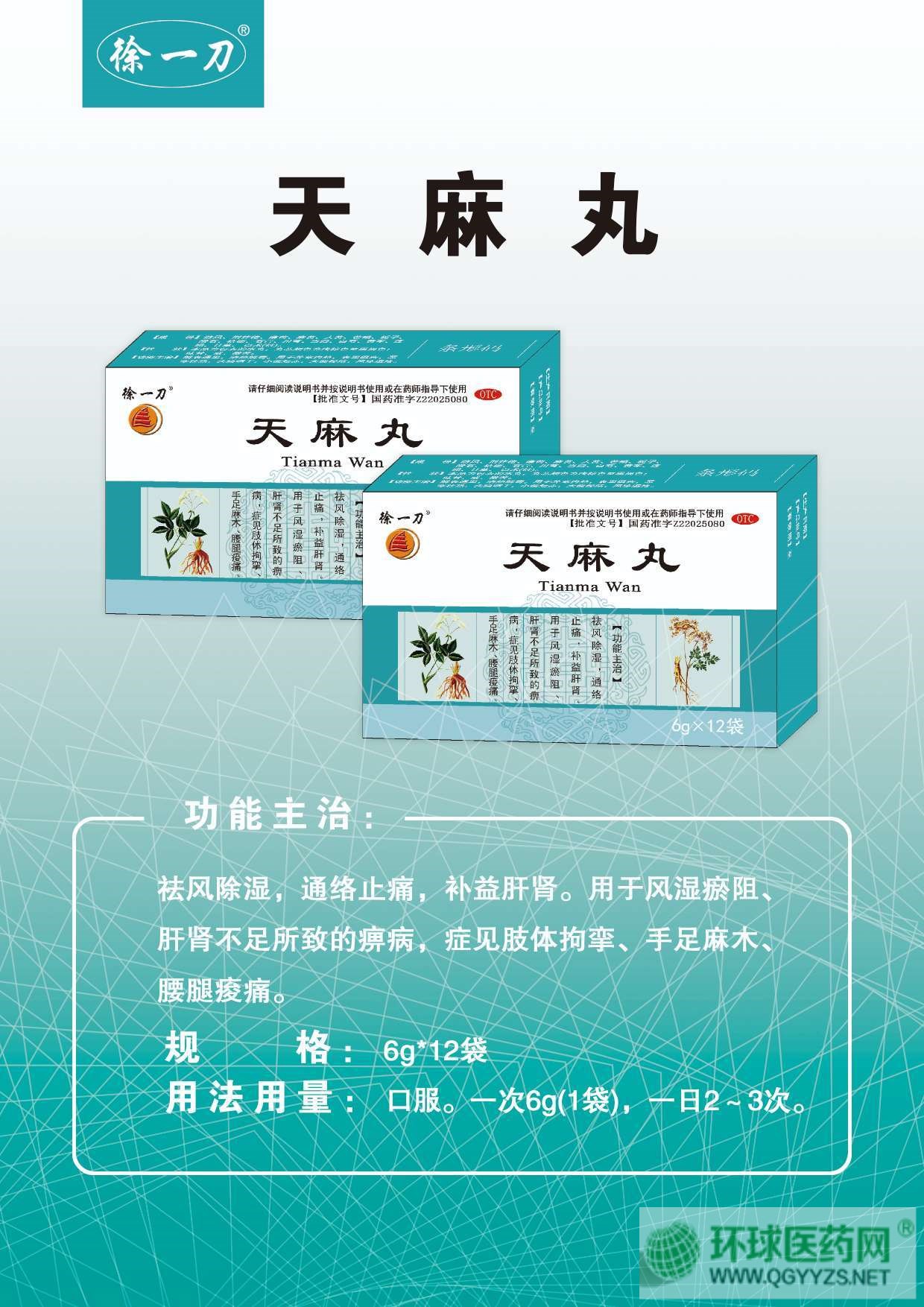 - 天麻丸(徐一刀) 批準(zhǔn)文號: 國藥準(zhǔn)字z22025080規(guī) 格: 6g*12袋