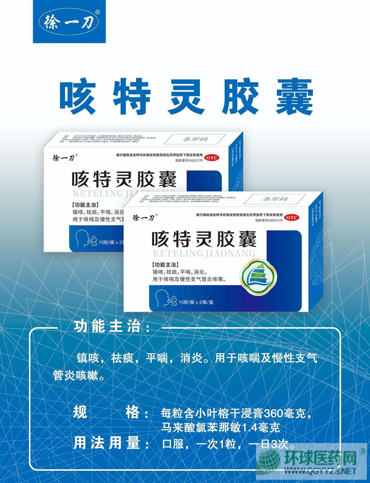 - 咳特靈膠囊(徐一刀) 批準(zhǔn)文號(hào): 國(guó)藥準(zhǔn)字Z45021279規(guī) 格: 15粒*2板