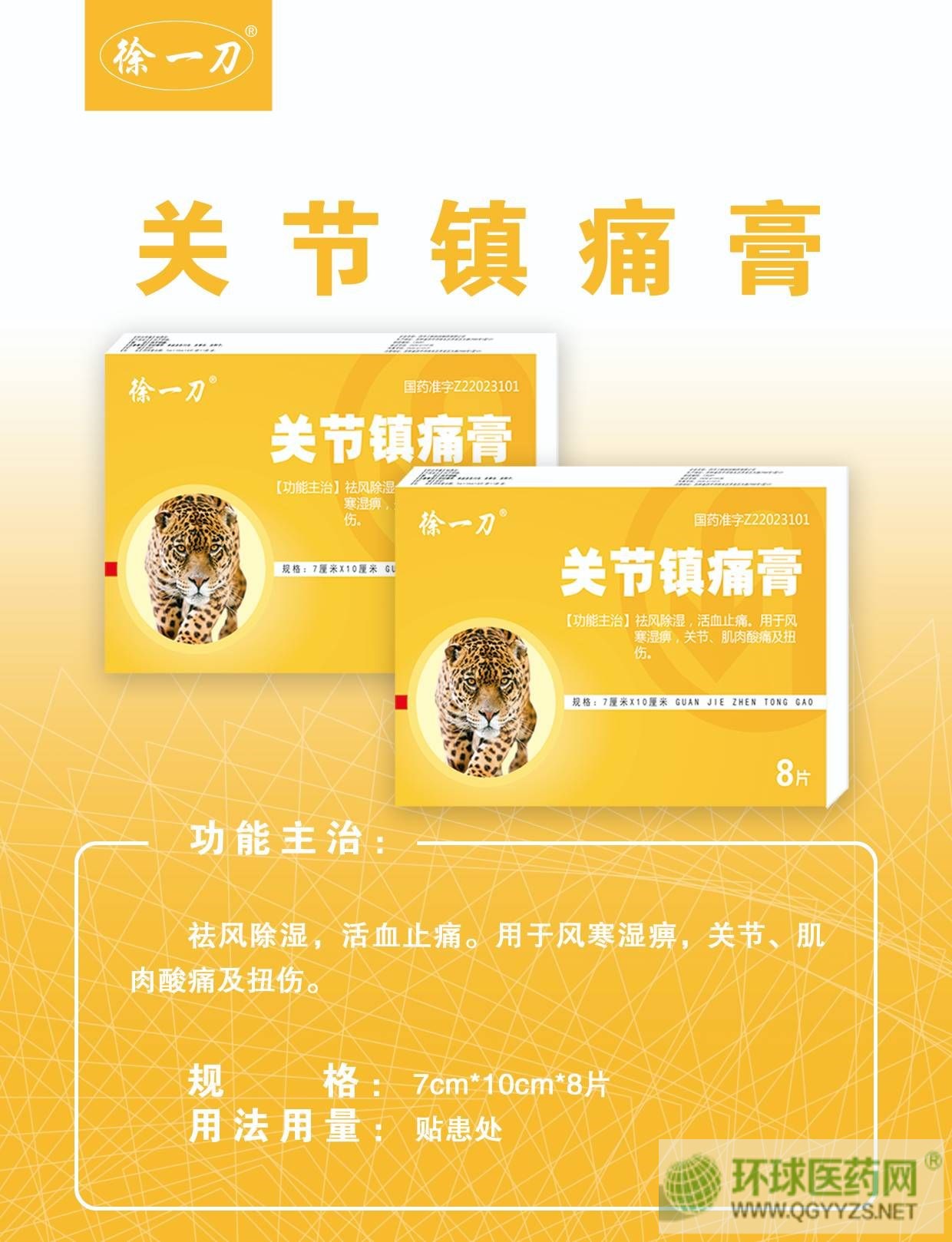 - 關(guān)節(jié)鎮(zhèn)痛膏(徐一刀) 批準(zhǔn)文號(hào): 國(guó)藥準(zhǔn)字Z22023101規(guī) 格: 8片7*10cm