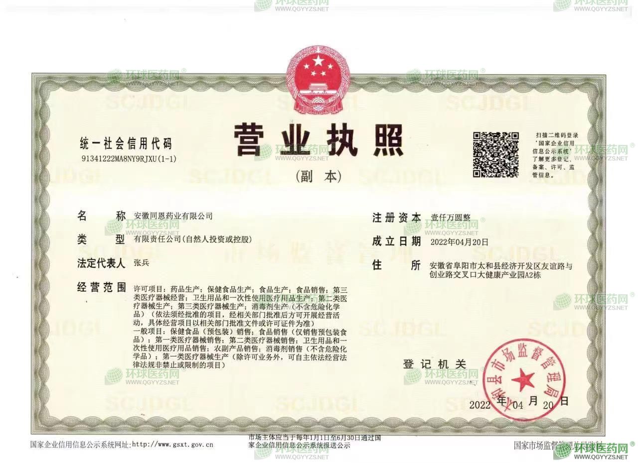 安徽同恩藥業(yè)有限公司成立于2022年4月20日,注冊資金1000萬,位于安徽省阜陽市太和縣經(jīng)濟(jì)開發(fā)區(qū)友誼路與創(chuàng)業(yè)路交叉口大健康產(chǎn)業(yè)園A2棟,使用總面積為10000平方米,現(xiàn)有技術(shù)研發(fā)人員30人,車間工人120人。
