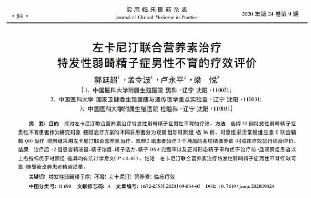 作用機(jī)理:左卡尼汀聯(lián)合營(yíng)養(yǎng)素治療特發(fā)性弱畸精子癥男性不育具有良好療效,可有效提高正常形態(tài)精子比例,此外營(yíng)養(yǎng)素合劑能夠及時(shí)補(bǔ)充維持精子活力、精液濃度、受精功能、附睪功能所必須的微量元素,對(duì)于改善患者精液質(zhì)量和提高女方受孕率具有重要意義。因此,左卡尼汀聯(lián)合營(yíng)養(yǎng)素治療特發(fā)性弱畸精子癥男性不育是一種理想的治療方案,可在臨床推廣應(yīng)用。