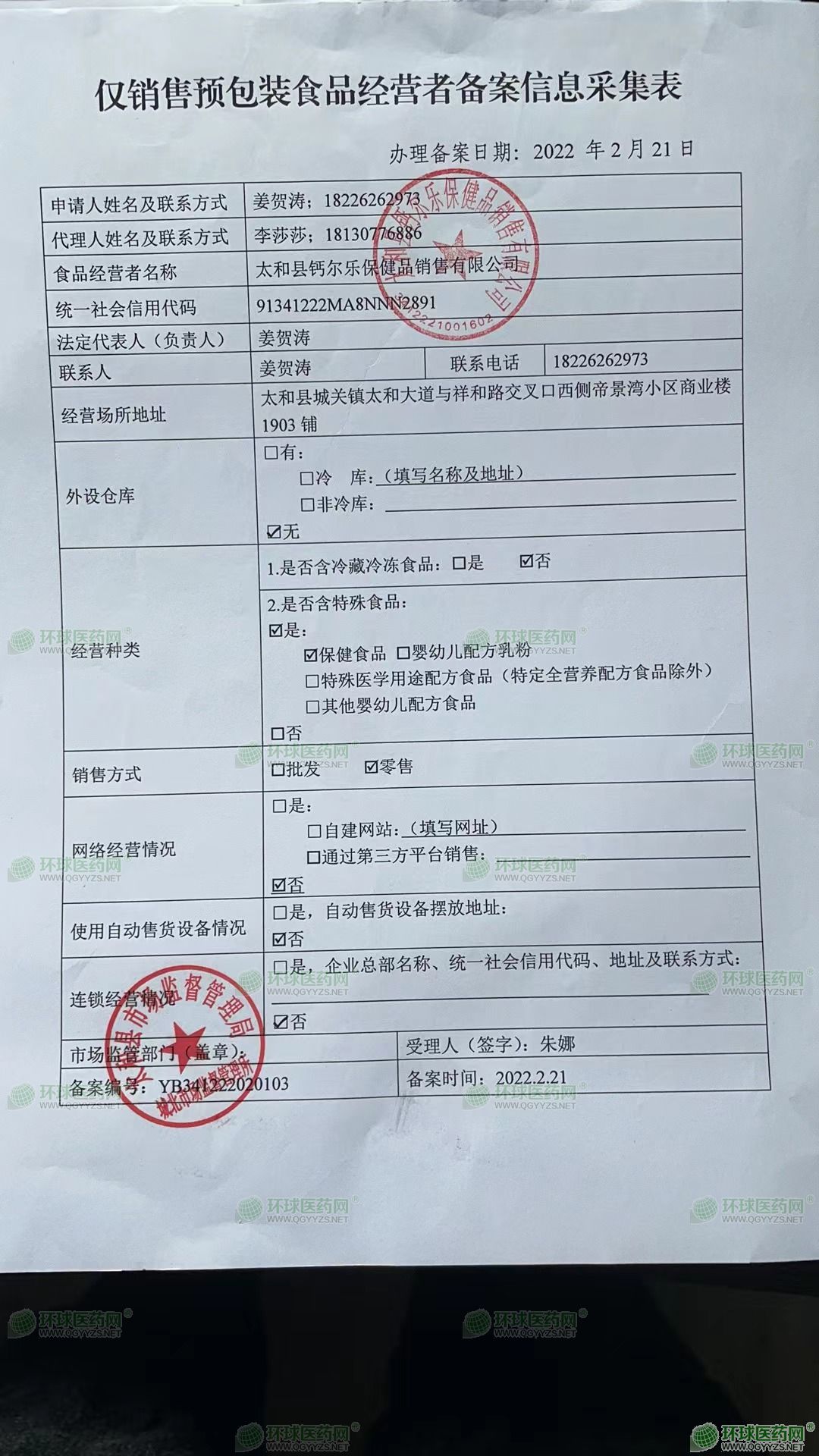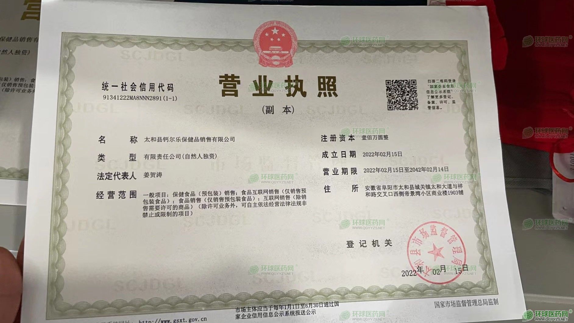 太和縣鈣爾樂保健品銷售有限公司成立于2022年02月15日,注冊(cè)地位于安徽省阜陽市太和縣城關(guān)鎮(zhèn)太和大道與祥和路交叉口西側(cè)帝景灣小區(qū)商業(yè)樓1903鋪,法定代表人為姜賀濤。經(jīng)營范圍包括一般項(xiàng)目:保健食品(預(yù)包裝)銷售;食品互聯(lián)網(wǎng)銷售(僅銷售預(yù)包裝食品);食品銷售(僅銷售預(yù)包裝食品);互聯(lián)網(wǎng)銷售(除銷售需要許可的商品)(除許可業(yè)務(wù)外,可自主依法經(jīng)營法律法規(guī)非禁止或限制的項(xiàng)目)