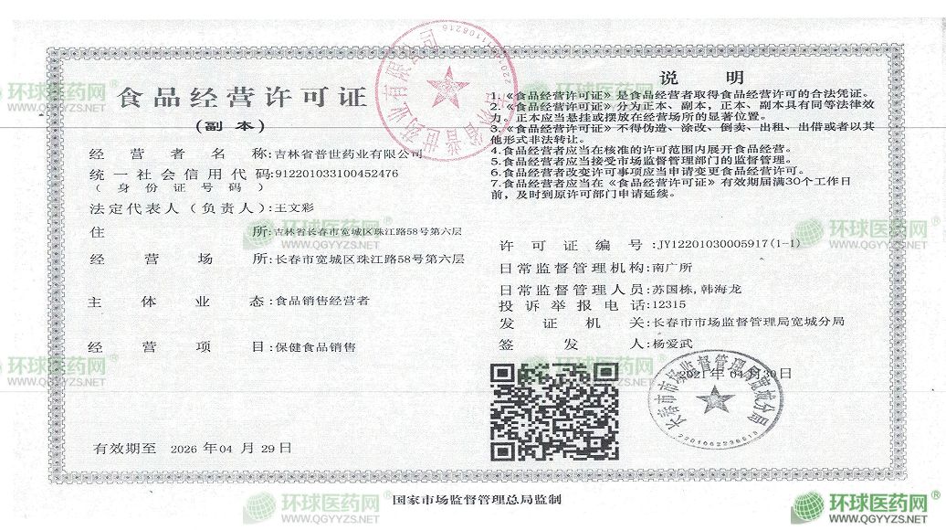 [主營產(chǎn)品]:中成藥、化學(xué)藥制劑、抗生素、二類醫(yī)療器械、保健食品、消殺用品銷售(依法須經(jīng)批準(zhǔn)的項目,經(jīng)相關(guān)部門批準(zhǔn) 更多>