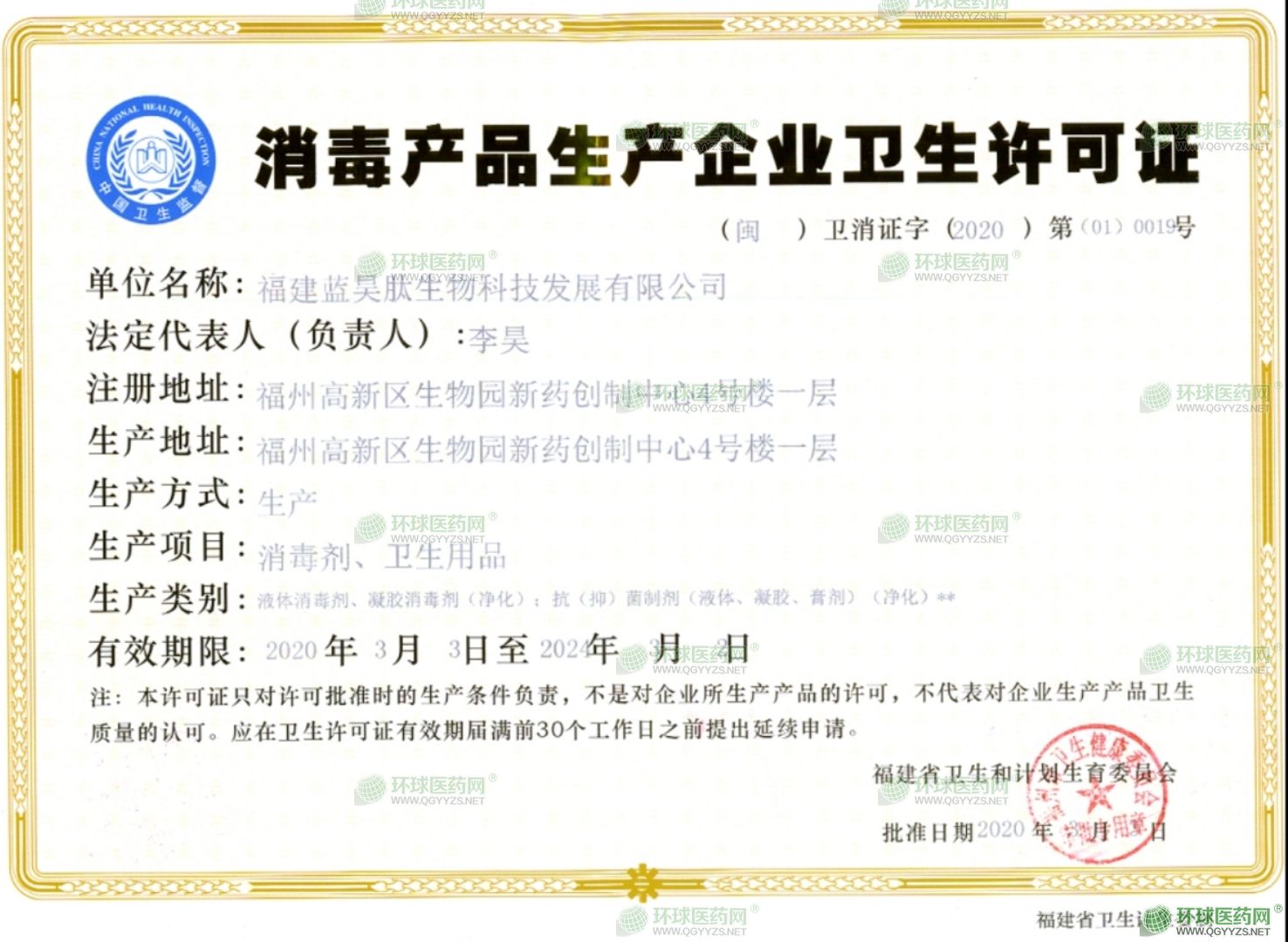 - 消毒產(chǎn)品生產(chǎn)企業(yè)衛(wèi)生許可證