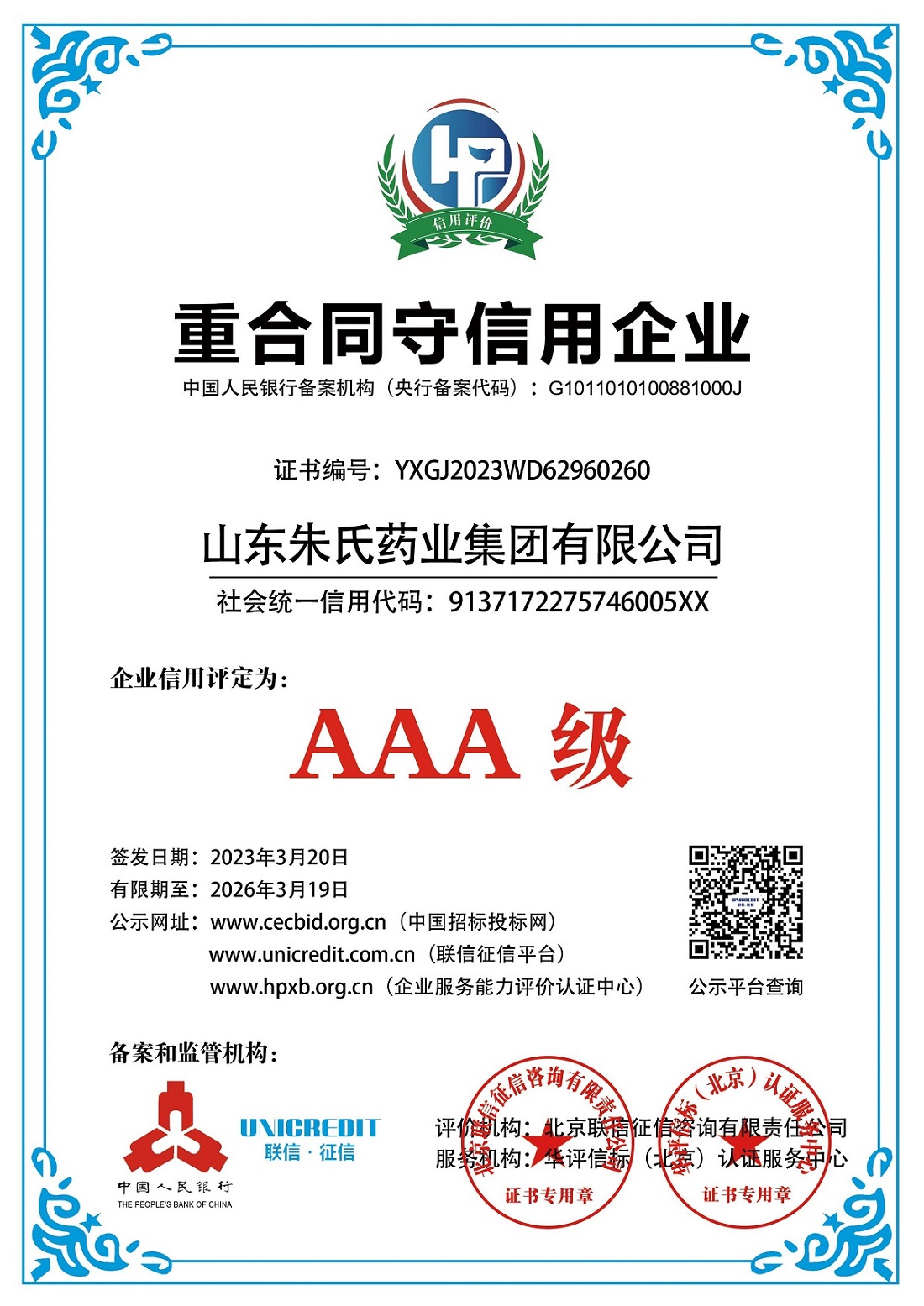 山東朱氏藥業(yè)集團(tuán)榮獲AAA級(jí)重合同守信用企業(yè),這是對(duì)企業(yè)多年來(lái)一直致力于重合同守信用的認(rèn)可和肯定。自創(chuàng)立以來(lái),朱氏藥業(yè)集團(tuán)一直將合同法律制度視為企業(yè)發(fā)展的保障和基礎(chǔ),積極推進(jìn)重合同守信用工作。此次獲得AAA級(jí)重合同守信用稱(chēng)號(hào),不僅是企業(yè)經(jīng)營(yíng)規(guī)范化的一種表現(xiàn),更是消費(fèi)者信任的重要保障。