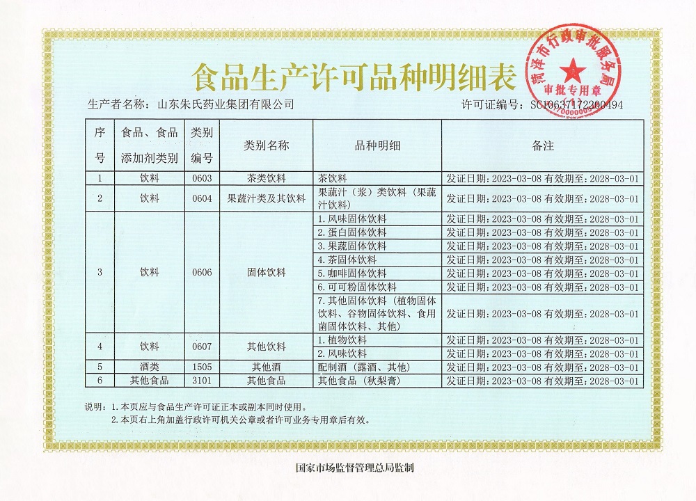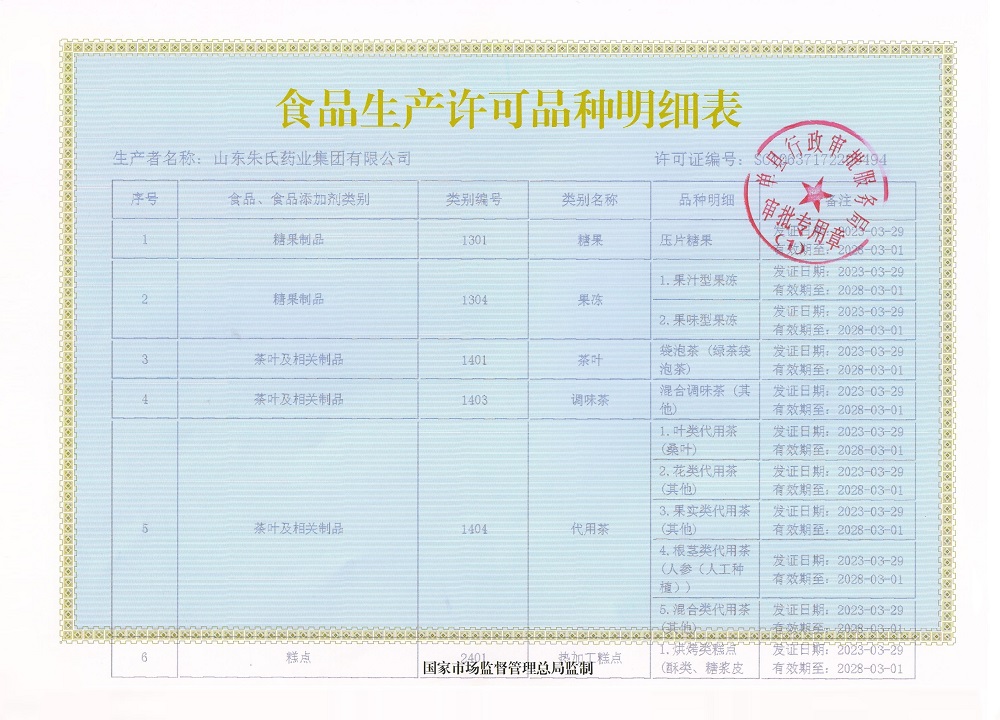 山東朱氏藥業(yè)集團(tuán)喜獲《食品生產(chǎn)許可證》