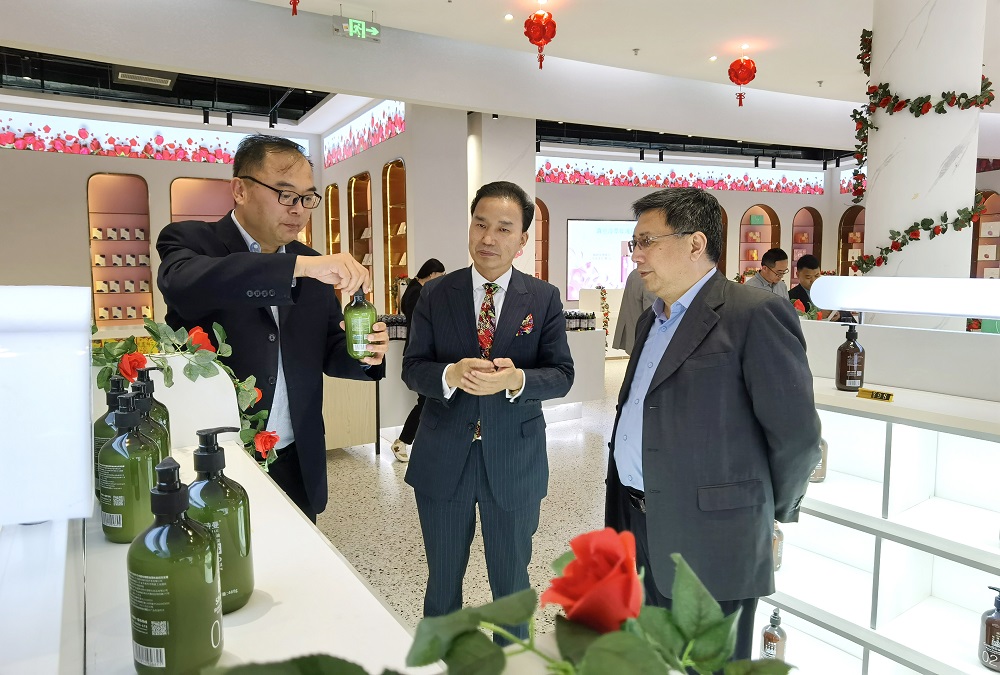 山東省化妝品協(xié)會(huì)會(huì)長(zhǎng)朱坤福攜委員會(huì)一行走進(jìn)芳蕾玫瑰集團(tuán)參觀調(diào)研