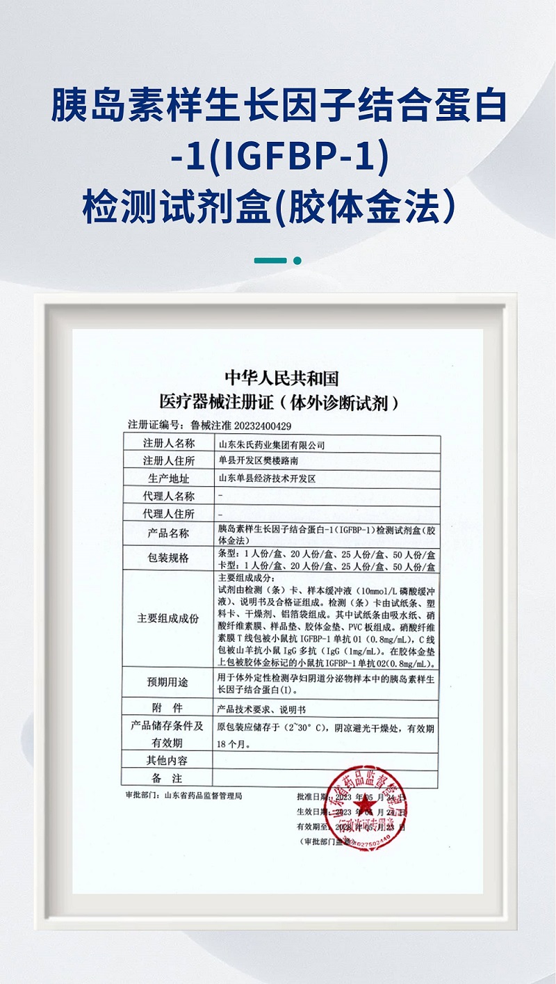 朱氏藥業(yè)集團(tuán):胰島素樣生長因子結(jié)合蛋白-1(IGFBP-1)檢測(cè)試劑盒(膠體金法)獲醫(yī)療器械注冊(cè)證