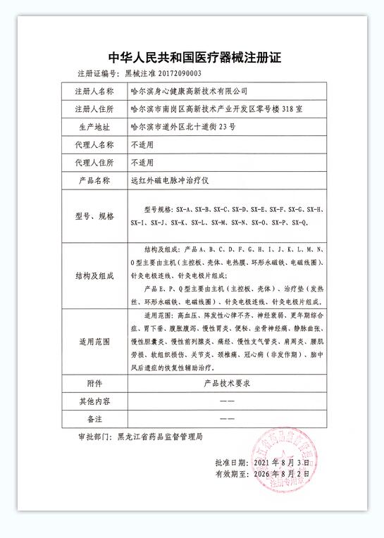 身心健康遠紅外磁電脈沖治療儀由哈爾濱身心健康高新技術有限公司重磅出品。身心健康企業(yè)集團有限公司成立于1996年,是一家擁有雄厚科研實力的國際健康產(chǎn)業(yè)集團,主要涉足生物工程、醫(yī)療器械、醫(yī)藥、電子、電子商務等現(xiàn)代高新技術領域。