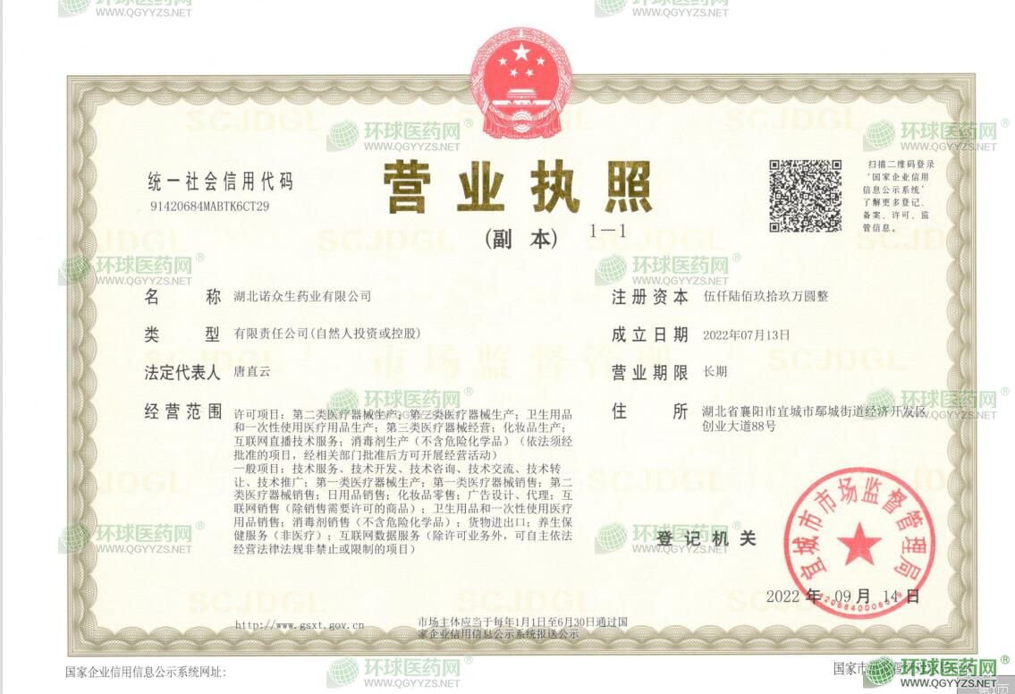 湖北諾眾生藥業(yè)有限公司組建于2022年7月13日,總注冊資金5699萬元,占地面積近50000平方米,廠房面積20000平方米。采用行業(yè)先進的各類自動化生產(chǎn)流水線和專業(yè)的實驗儀器。先進的無菌實驗室,潔凈的10萬級凈化車間,是一家集醫(yī)藥制造業(yè)、醫(yī)療器械、衛(wèi)生用品、一次性使用醫(yī)療用品、化妝品、消毒產(chǎn)品生產(chǎn)、銷售;技術(shù)服務、技術(shù)開發(fā)、技術(shù)咨詢、技術(shù)交流、技術(shù)轉(zhuǎn)讓、技術(shù)推廣,廣告設(shè)計、代理:互聯(lián)網(wǎng)銷售,貨物進出口;養(yǎng)生保健服務,互聯(lián)網(wǎng)數(shù)據(jù)服務的綜合型企業(yè)。