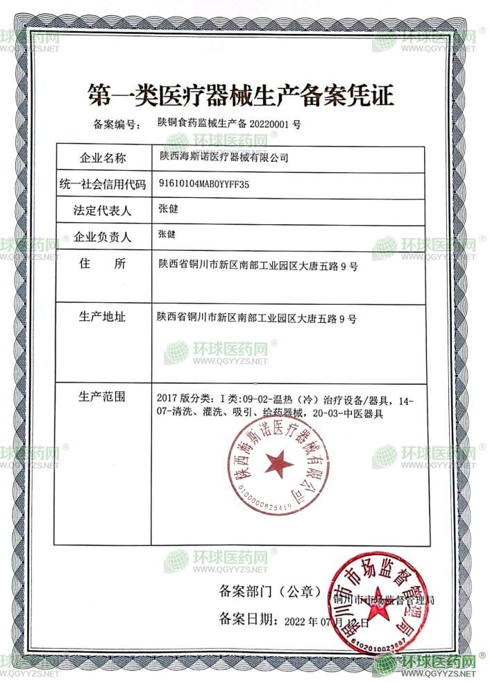 - 第一類醫(yī)療器械生產(chǎn)備案憑證