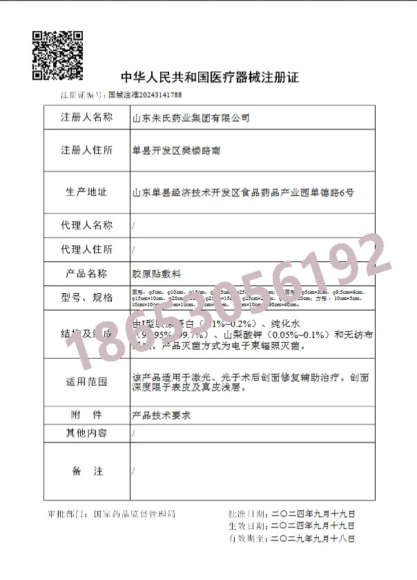 在高端醫(yī)用敷料領域持續(xù)突破的山東朱氏藥業(yè)集團近日再傳喜訊,其創(chuàng)新研發(fā)的"醫(yī)用膠原貼敷料"成功獲得國家藥品監(jiān)督管理局頒發(fā)的醫(yī)用遠紅外治療貼醫(yī)療器械注冊證(注冊證編號:魯械注準2023xxxxxx)。這一重要資質的取得,標志著企業(yè)在功能性醫(yī)用敷料領域的技術創(chuàng)新獲得國家權威認可,為創(chuàng)面治療提供了更專業(yè)的解決方案。