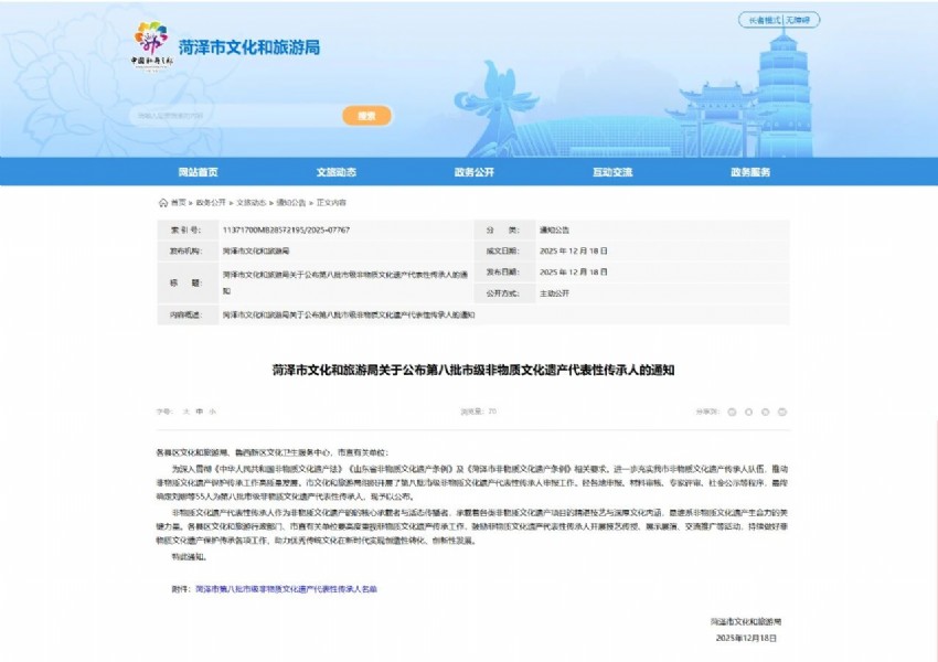 展望未來 傳承人表示,將以此次入選市級非遺為契機,在保持傳統(tǒng)制作工藝的基礎(chǔ)上,積極探索符合現(xiàn)代人需求的傳承方式,讓這一百年傳統(tǒng)醫(yī)藥技藝更好地服務(wù)于大眾健康。 此次菏澤市第八批市級非物質(zhì)文化遺產(chǎn)代表性傳承人名單共涵蓋傳統(tǒng)醫(yī)藥、傳統(tǒng)技藝、民間文學(xué)等多個類別,充分展示了菏澤豐富的文化底蘊和非遺保護成果。