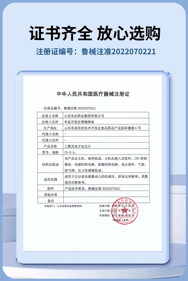 精準守護,權(quán)威認證!朱氏藥業(yè)上臂式電子血壓計獲國家計量器具型式批準 --- 血壓測量,精準是關(guān)鍵。家里備一臺可靠、準確的血壓計,是對自己和家人健康的基本守護。 今天,我們帶來一個重磅好消息:山東朱氏藥業(yè)集團有限公司自主研發(fā)生產(chǎn)的 【上臂式電子血壓計(型號:ZS-X-A)】,已正式獲得 國家《計量器具型式批準證書》(CPA證書)! 這標志著該產(chǎn)品在精準度及可靠性上,完全符合國家法定要求,可以放心選購,為您的健康保駕護航。