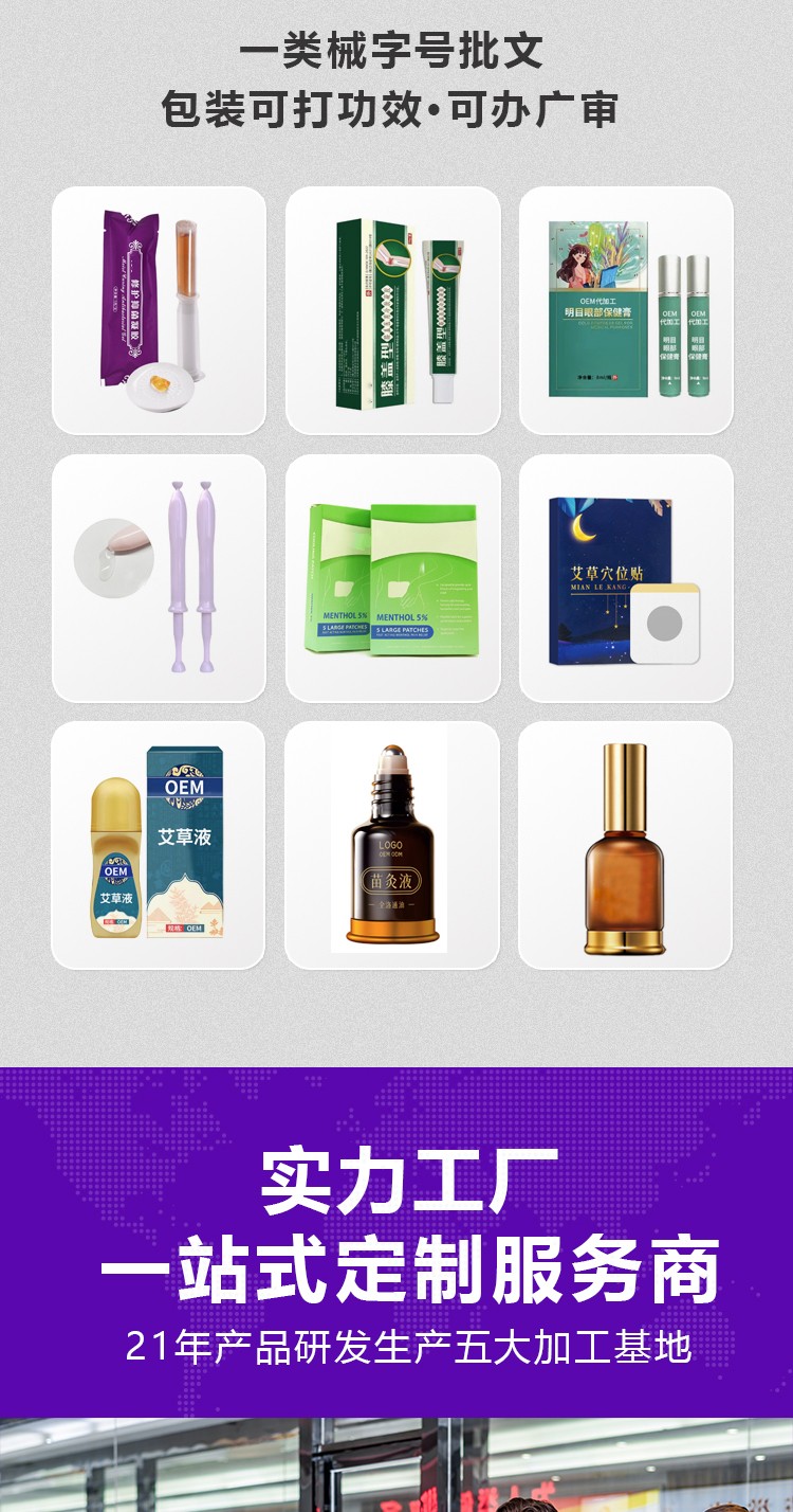 免費(fèi)提供品牌注冊(cè)、VI設(shè)計(jì)、配方研發(fā)、包材采購及灌裝設(shè)備,協(xié)助完成備案“三證”,5000貼(械字號(hào))起訂。