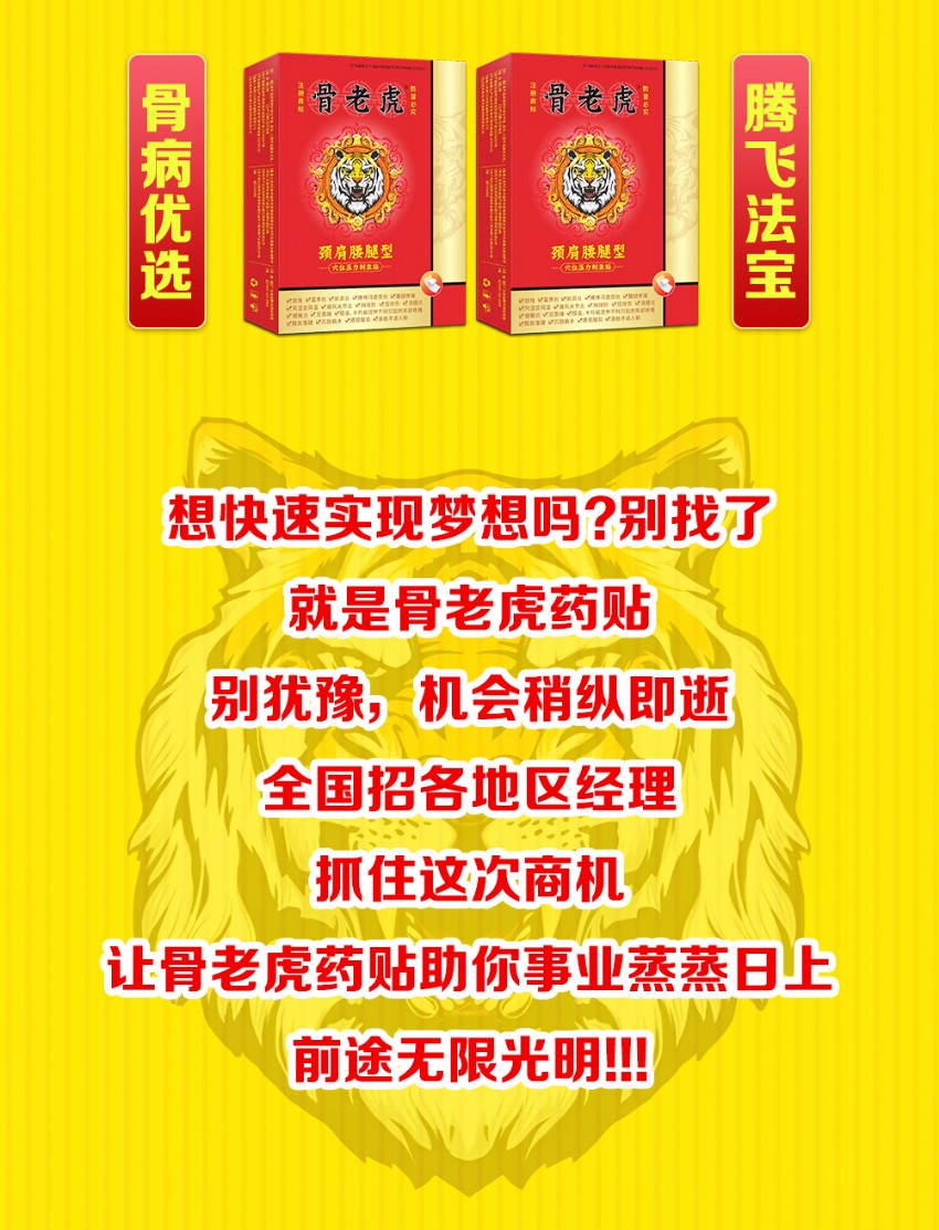 骨老虎®產品全國招募省市區(qū)總代!控銷,不掛網!