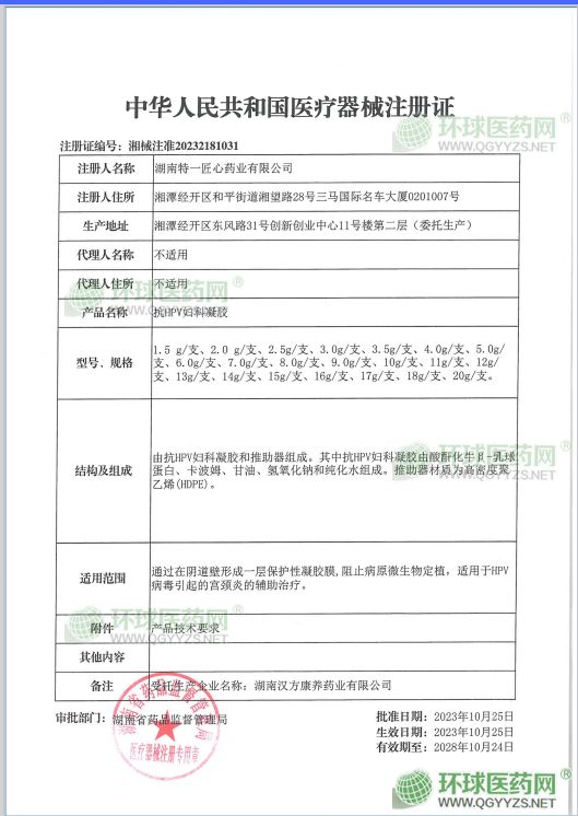- 醫(yī)療器械注冊證-抗HPV婦科凝膠