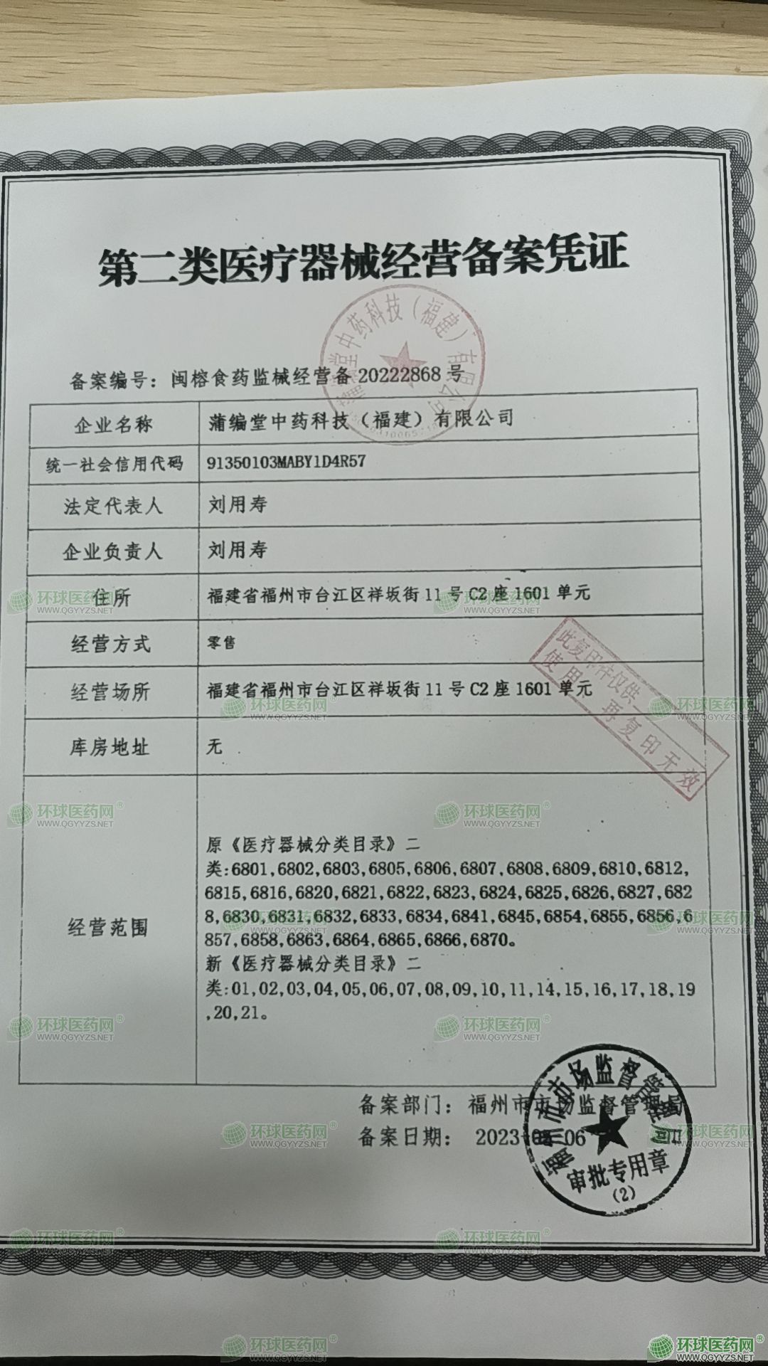 - 第二類醫(yī)療器械經(jīng)營(yíng)備案憑證