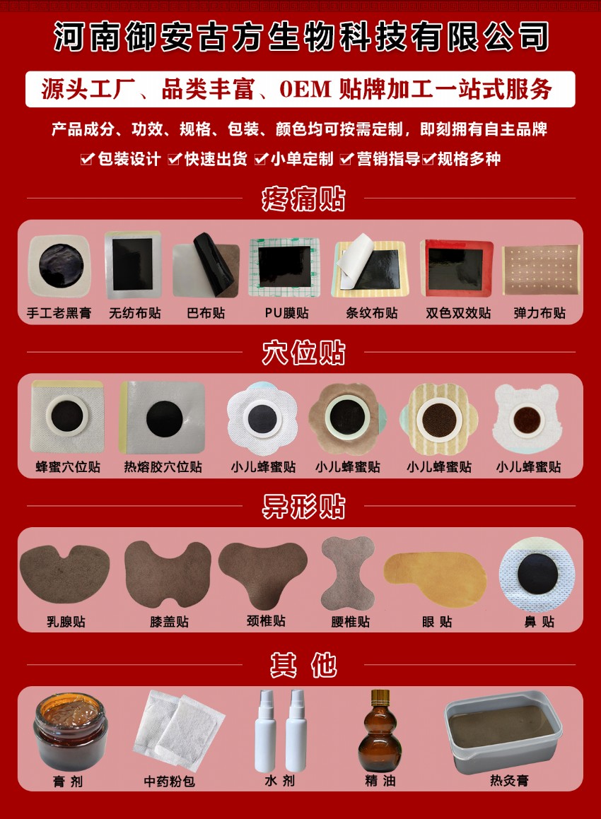 【御安古方,源頭工廠,貼劑代工】疼痛貼/穴位貼/異形貼,24小時(shí)出樣,日產(chǎn)30萬貼!