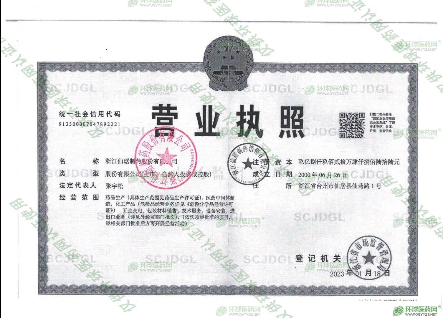 注冊地址: 浙江省臺州市仙居縣仙藥路1號