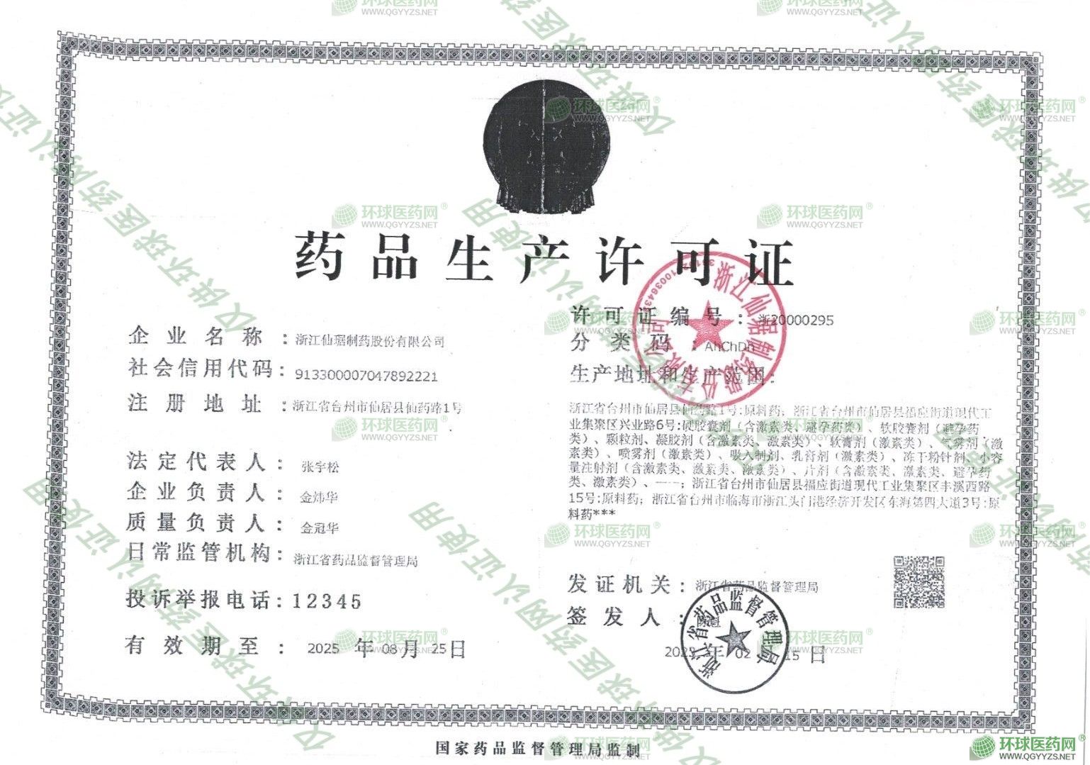 生產(chǎn)范圍: 浙江省臺州市仙居縣仙藥路1號:原料藥;浙江省臺州市仙居縣福應(yīng)街道現(xiàn)代工業(yè)集聚區(qū)興業(yè)路6號:硬膠囊劑(含激素類、避孕藥類)、軟膠囊劑(避孕藥類)、顆粒劑、凝膠劑(含激素類、激素類)、軟膏劑(激素類)、氣霧劑(激素類)、噴霧劑(激素類)、吸入制劑、乳膏劑(激素類)、凍干粉針劑、小容量注射劑(含激素類、激素類、激素類)、片劑(含激素類、激素類、避孕藥類、激素類)、——;浙江省臺州市仙居縣福應(yīng)街道現(xiàn)代工業(yè)集聚區(qū)豐溪西路15號:原料藥;浙江省臺州市臨海市浙江頭門港經(jīng)濟開發(fā)區(qū)東海第四大道3號:原料藥***