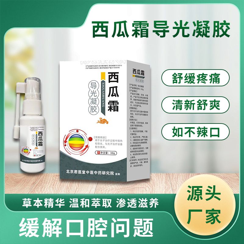 - 西瓜霜導(dǎo)光凝膠廠家口腔潰瘍緩解疼痛可定制 批準(zhǔn)文號(hào): 冀滄械備20230016規(guī) 格: 詳見(jiàn)產(chǎn)品說(shuō)明書(shū)