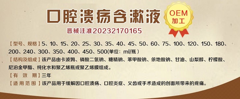 爾井制藥專(zhuān)注于各類(lèi)貼劑、洗液、凝膠等械字號(hào)產(chǎn)品的 OEM 代工。我們的貼劑產(chǎn)品涵蓋了多種功效,如緩解疼痛的熱敷貼、針對(duì)特定穴位治療的磁療貼等。洗液產(chǎn)品包含醫(yī)用液體止鼾器等,可有效改善相關(guān)癥狀。凝膠類(lèi)產(chǎn)品也豐富多樣,能滿足不同領(lǐng)域的使用需求。無(wú)論您需要何種功能的械字號(hào)產(chǎn)品,我們都有能力為您生產(chǎn)。