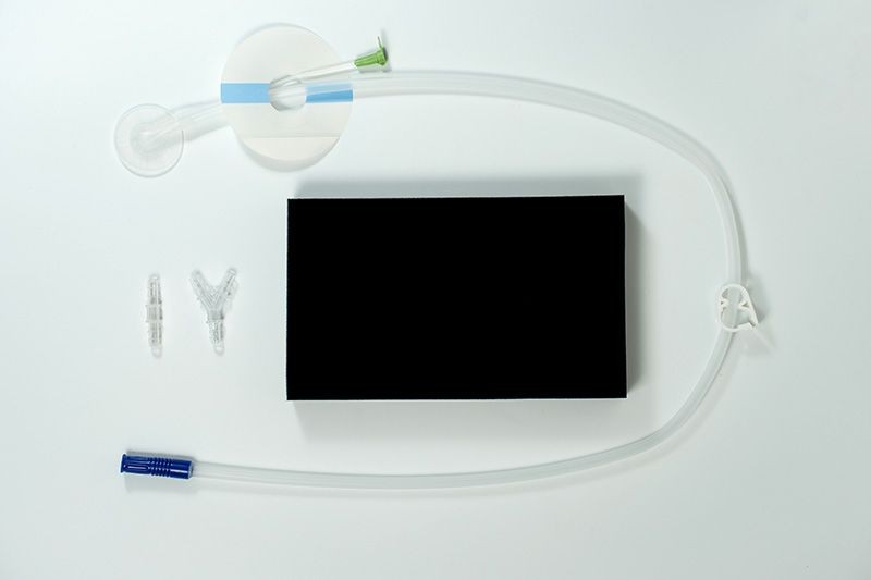 主要成分:封閉式負壓引流套裝(以下簡稱:負壓引流套裝)由聚氨酯海綿、負壓引流管路(含負壓引流管、沖洗管、吸盤、管路接頭、止流閥(管夾))、一字型轉接頭、Y型轉接頭(選配)、吸盤貼膜、封閉貼膜(兩張)組成。產(chǎn)品以無菌狀態(tài)提供,經(jīng)環(huán)氧乙烷滅菌,一次性使用。