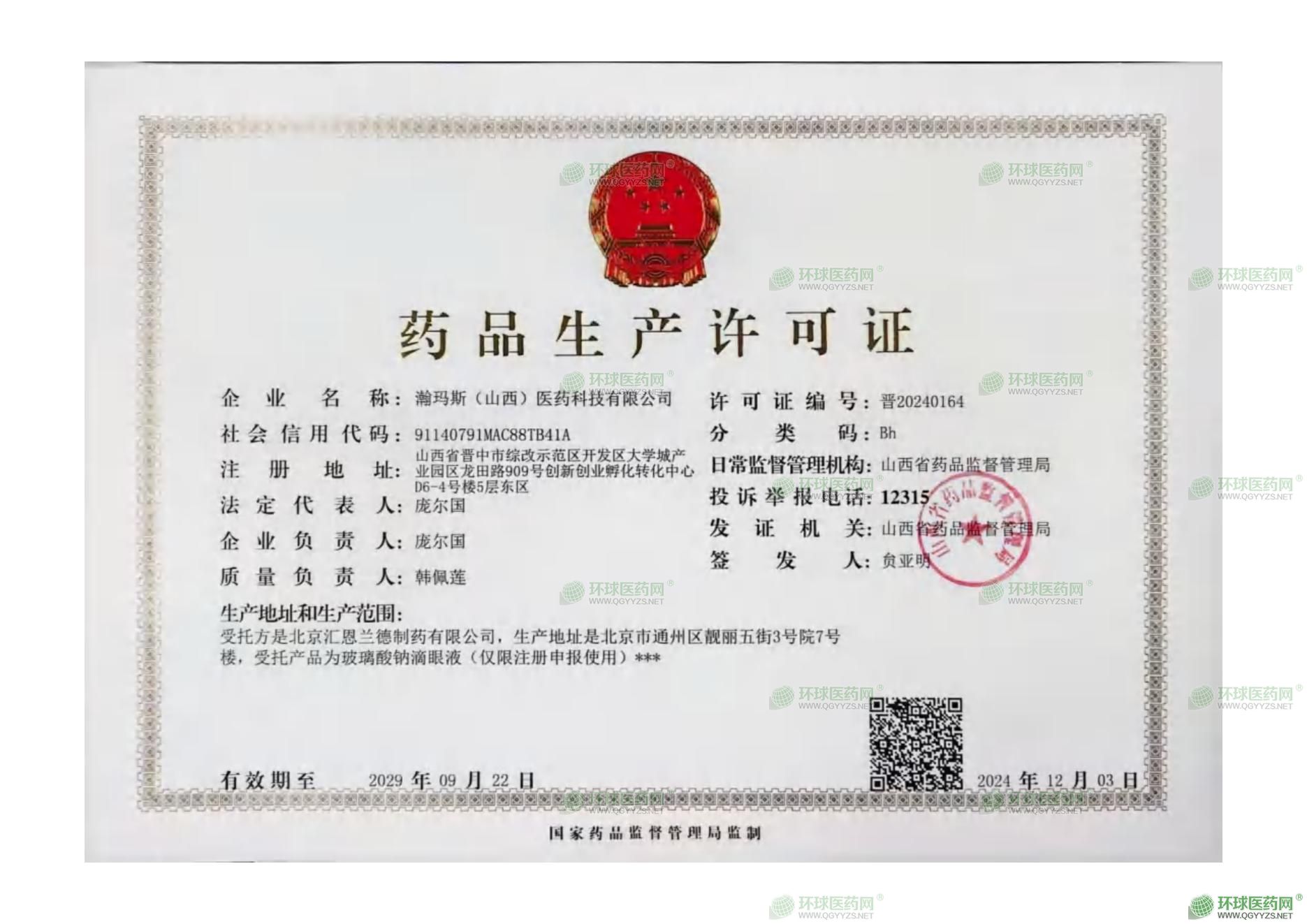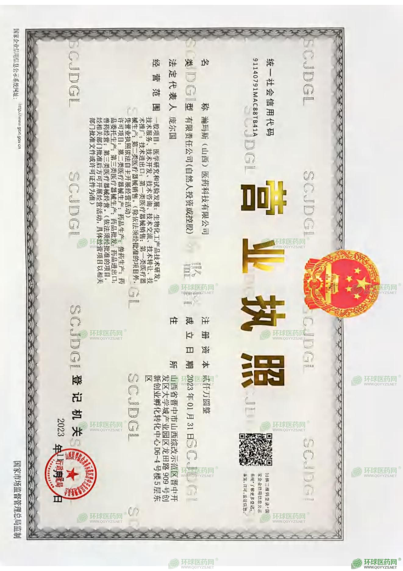 瀚瑪斯(山西)醫(yī)藥科技有限公司